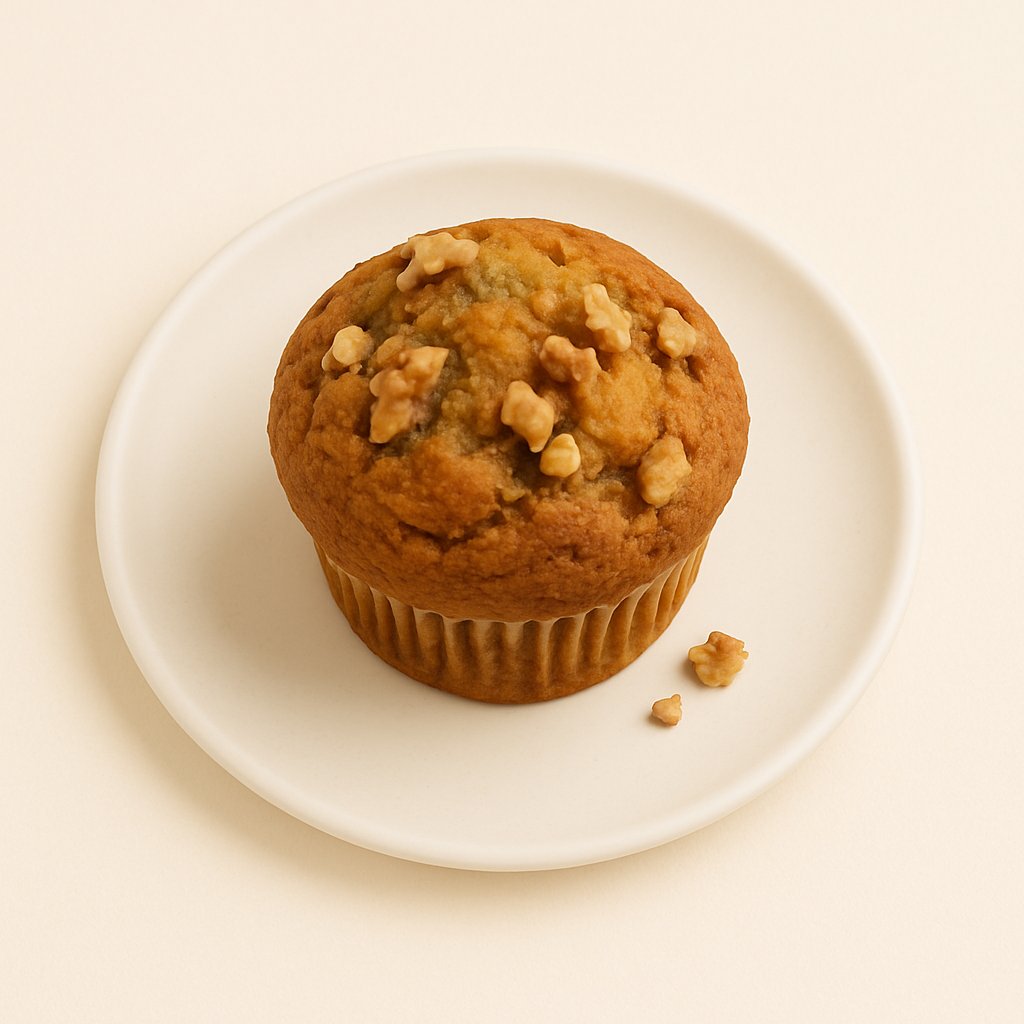 Fluffy muffin infused with ripe bananas and walnuts.