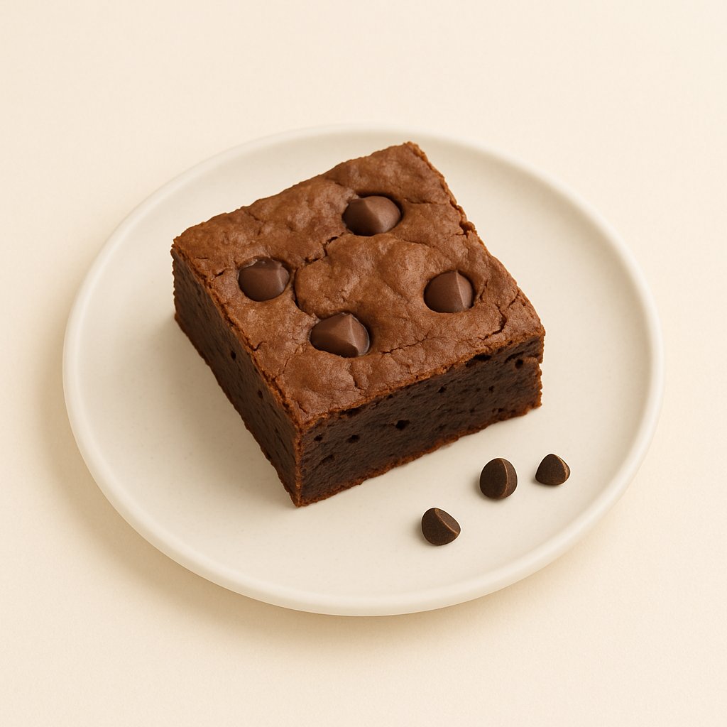 Brownie with chocolate chips and a fudgy center.